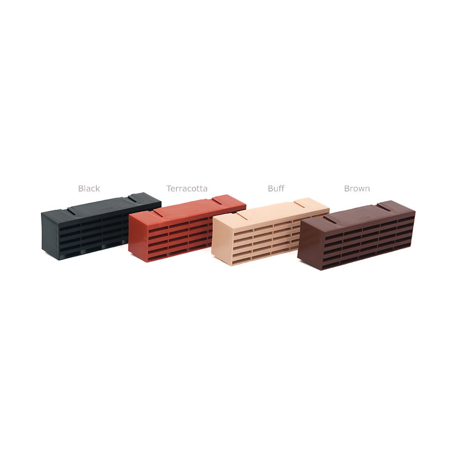 For use: in conjunction with the telescopic underfloor ventilator for providing ventilation below suspended ground floors and with cavity sleeves for ventilation through external walls to the building