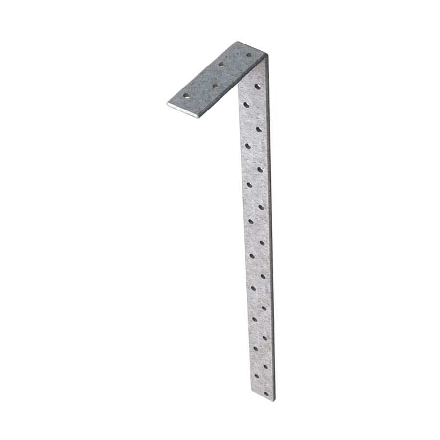 - 1200mm long heavy duty 27.5mm x 5mm strap bent at 150mm - Designed to provide horizontal restraint against wind pressure and uplift forces - Hole diameters are 6mm and they are holed at 12.5mm gro